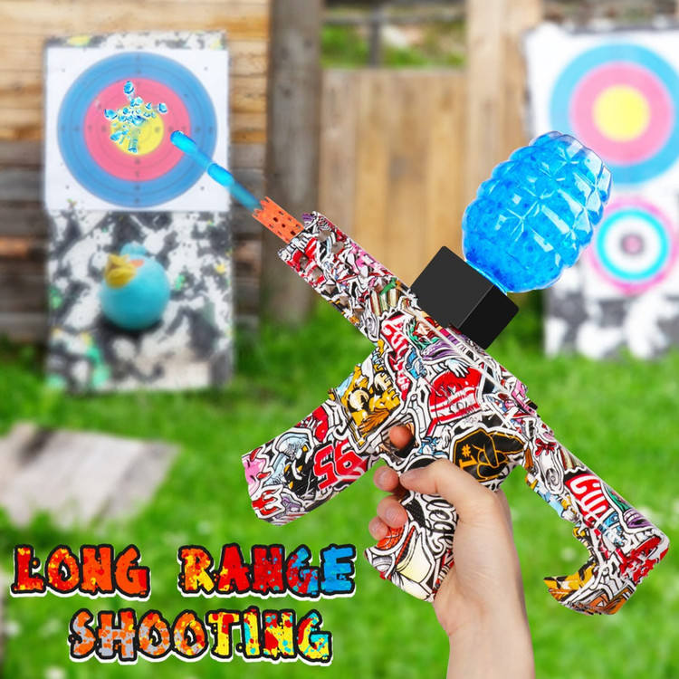 تفنگ مهمات ژله ای که با باتری قابل شارژ کار می کند. تا 200 گلوله را در یک زمان با برد بیشتر از 15 متر بارگیری می کند. از مهمات ژله ای 8 میلی متری A-001 استفاده می کند. مهمات ژله ای لک نمی کند و بعد از شلیک تبخیر می شود.شامل تفنگ، خشاب قابل جابجایی ، باتری قابل شارژ، شارژر USB، ظرف با مهمات 300 عددی ساشه 2000 گلوله c/u دارای مهمات برای هیدراته کردن، بند تفنگ و عینک ایمنی. بسیار مهیج، حتی برای افردا بزرگسال.
