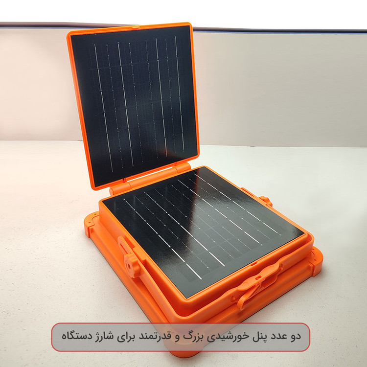 دارای حالت چشمک زن پلیسی، دو پنل خورشیدی بزرگ و قوی، 2 عدد لامپ LED سیار