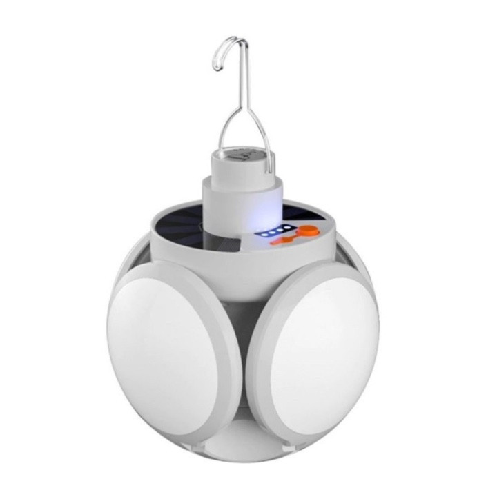 لامپ شارژی خورشیدی با وزن 300 گرم یک نمونه از فناوری های پیشرفته مدرن به حساب می آید.ای لامپ هم توسط کابل شارژ میشود هم توسط انرژی خورشیدی شارژ میشود.عمر لامپ طولانی است تا 5000 ساعت روشنایی مداوم را تضمین میکند،این لامپ رو میشه از قلابی آویز کرد و به راحتی کار خود را انجام داد،این لامپ قادر به ایجاد نور کافی در منزل و فضای باز و گردشگری و…است.امکان حمل و نقل آسان در مسافرت و گردش به کاربزان خود ارائه میدهد.