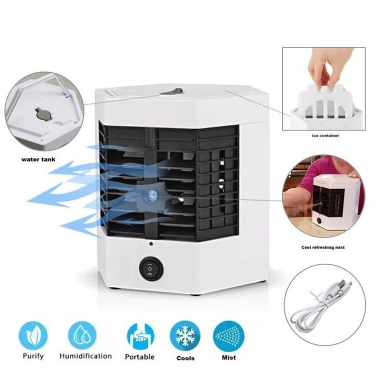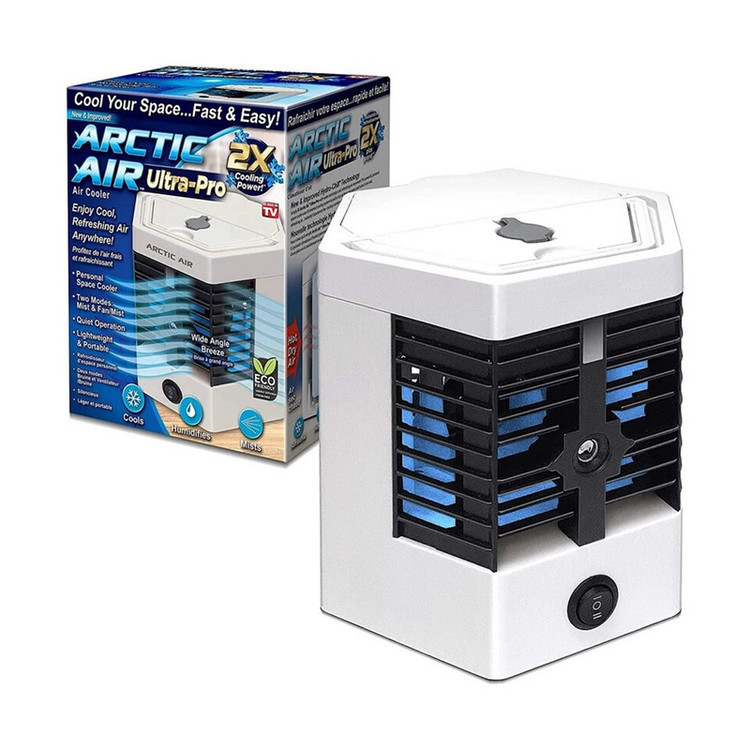 کولر آبی مدل Arctic Air Ultra pro یک کولر قابل حمل با خروجی باد محدود (پرتاب باد حدود 5 متر) با کاهش دمای متوسط (حدود 4 درجه خنک تر از محیط) است، که با پاوربانک های معمول و یا کابل USB تایپ C، قابل استفاده است (فاقد باتری داخلی بوده و باید به منبع برق (لپتاپ/پاوربانک/یو.اس.بی) وصل باشد). مکانیسم خنک کنندگی تبخیری بوده و از یک فن کم مصرف و برگه های سلولوزی بهره می برد. تنظیمات دستگاه شامل تنظیم شدت باد در 3 درجه و رنگ قابل انتخاب برای نور ملایم دستگاه است. شارژدهی با شارژ کامل و شدت باد متوسط حدود 7.5 ساعت است. گنجایش مخزن آب حدود 300 میلی لیتر است. میزان صدای دستگاه باتوجه به بهینه فن، هنگام خواب آزاردهنده نیست. دستگاه قدرت چرخش باد و پخش ندارد و صرفاً بصورت مستقیم پرتاب باد دارد، و از این نظر برای استفاده روی میز کار، چادرهای کوچک و فضاهای محدود مناسب است. این کولر رومیزی در کمپهای تفریح و برای مسافرت کاربرد دارد و به راحتی یک چادر را خنک میکند . همچنین در پاییز و زمستان با خشک شدن هوا، می توان برای مرطوب یا خنک نگه داشتن، محیط گیاهان خانگی حساس از آن استفاده کرد، چون که کولر Arctic برای تنظیم دما و گردش جریان هوا و اکسیژن رسانی بهتر و همچنین متعادل کردن رطوبت گلخانه بسیار میتواند به شما و گیاهانتان کمک کند. اگر کلا قصد استفاده از قابلیت خنک کنندگی ندارید، می توان در مخزن آن اکالیپتوس و مواد معطر ریخت تا فضا را خوشبو کند. جنس این دستگاه بسیار با کیفیت بوده و باعث میشود در مقابل افتادن و شکستگی کاملا مقاوم باشد. نکته جالب این کولر این است که شما میتوانید مخزن های آن را داخل فریزر قرار دهید و وقتی آب داخل مخزن یخ زد داخل دستگاه قرار دهید و کولر را روشن کنید و سرمای واقعی را تجربه کنید.
