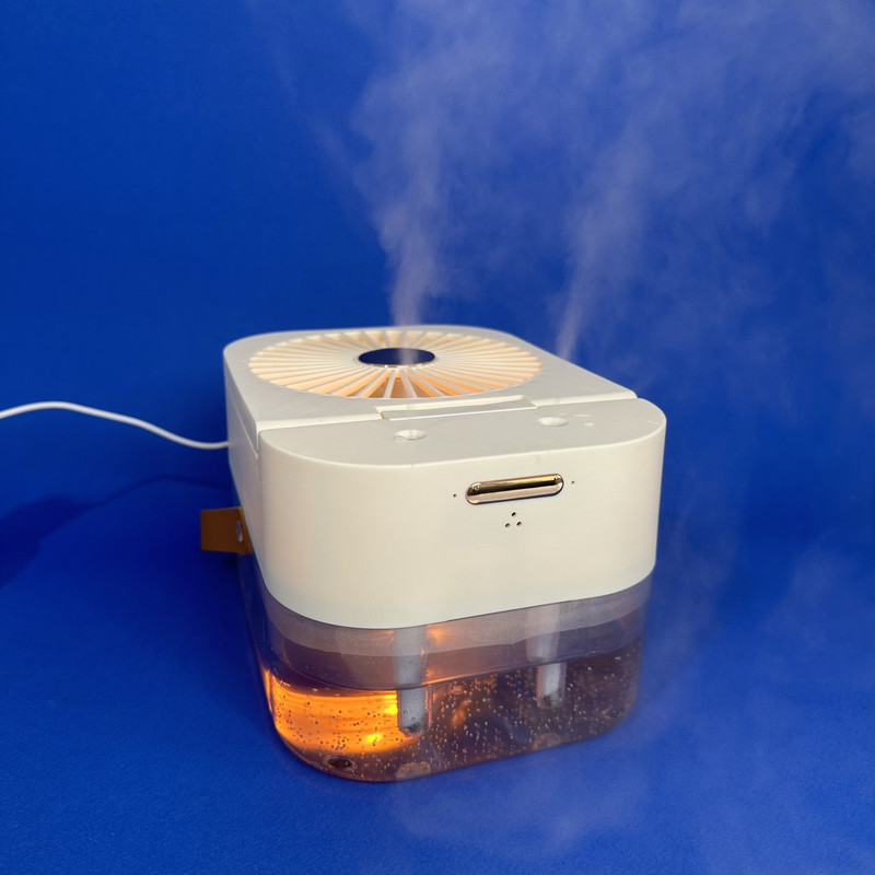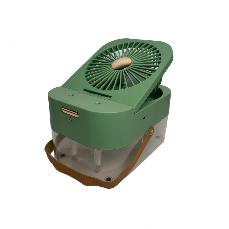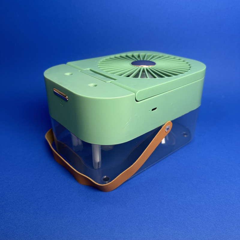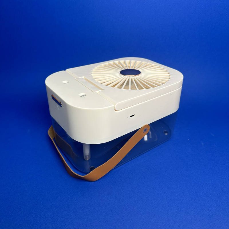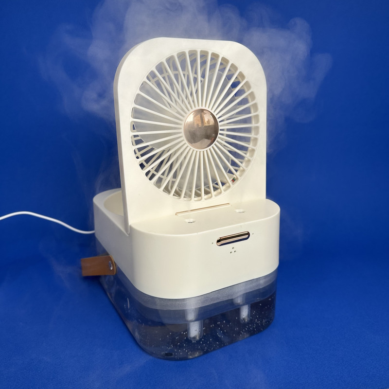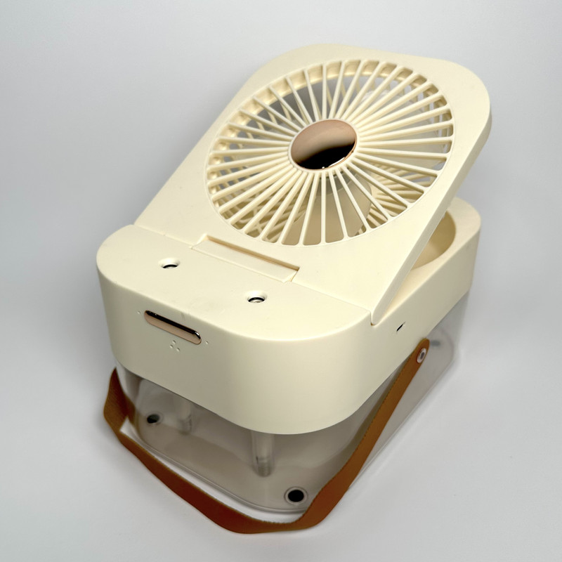 - دستگاه فن و مهپاش - دفترچه راهنما - کابل USB Type C - دو عدد میله پنبهای