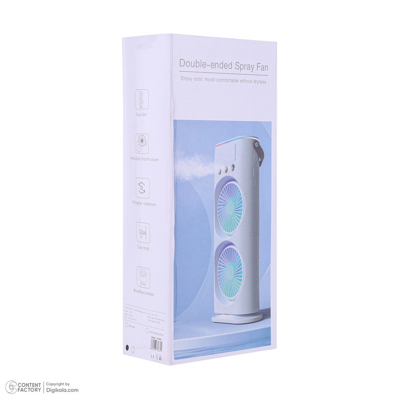 قابلیت چرخش پنکه و فنها / دارای دستگیرهی حمل / دارای ریموت کنترل / قابلیت مهپاش همراه با تنظیم شدت مه / دارای چراغ رنگی