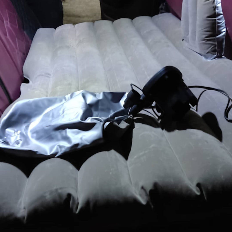 این محصول عکس اول دو تشک استفاده شده است و یکی از مناسب ترین وسیله های سفری بخصوص برای افرادی بوده که قصد اقامت در هتل و یا خانه را نداشته و یا اینکه استراحت های کوتاه در میان راه خواهد بود. محصولی که تنها توسط پمپ های باد فندکی همراه محصول قابل راه اندازی بوده و زمان جمع کردن حجم کوچکی را به خود می گیرد و به دلیل داشتن وزن بسیار کم شما می توانید این کالا را به سادگی با خود حمل و جا به جا کنید. این تخت بادی به گونه ای می باشد که به خوبی با طراحی صندلی عقب ماشین حالت گرفته و سطحی مسطح را برای شما فراهم می آورد و بهترین حالت را برای بدن شما فراهم آورده تا به هنگام استفاده در طولانی مدت احساس درد و یا خستگی در قسمت های مختلف بدن به شما دست ندهد . جنس رویه آن از پی وی سی جیربا یا همان مخمل می باشد که از کیفیت و مقاومت بالا در کنار نرمی و انعطاف پذیری ایده آل برخوردار می باشد .علاوه بر این دارای دو کوسن مجزا بادی با رویه مخمل و پمپ باد همراه نیز است.همچنین قابلیت تحمل وزن این محصول برابر با 155 کیلو گرم می باشد که نشان از کیفیت بالای ساخت آن دارد و به خوبی می تواند فشار وارده بر روی خود را مهار نماید . قابلیت فوق العاده ی این محصول علاوه بر تخت بودن، این است که میتوان با برعکس کردن محصول و قرار دادن آن در محیط و یا آب استخر و... از آن به عنوان مبل بادی استفاده کرد. تشک بادی ماشین رویه مخمل دولایه کاملا تضمینی هستش شما علاوه بر داخل ماشین داخل خونه روی اب داخل چادر می تونید ازش استفاده کنید این تشک دارای پمپ باد فندکی مخصوص وبا موتور قوی دو عدد بالشت پایه مخصوص کیت ترمیم می باشد این تشک به راحتی باد میشه به راحتی خالی میشه چون پمپ بادش دو کارست هم باد خالی هم پر میکنه ....