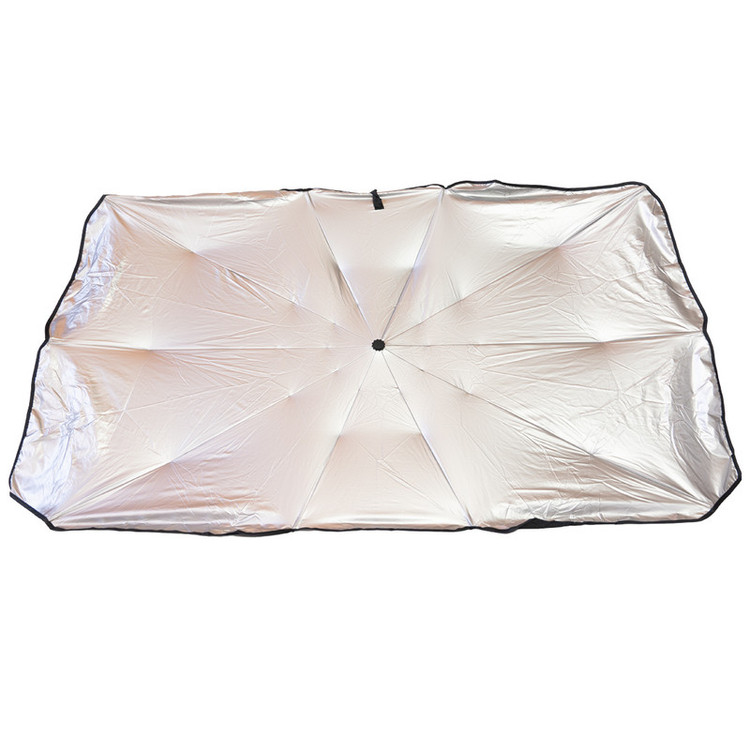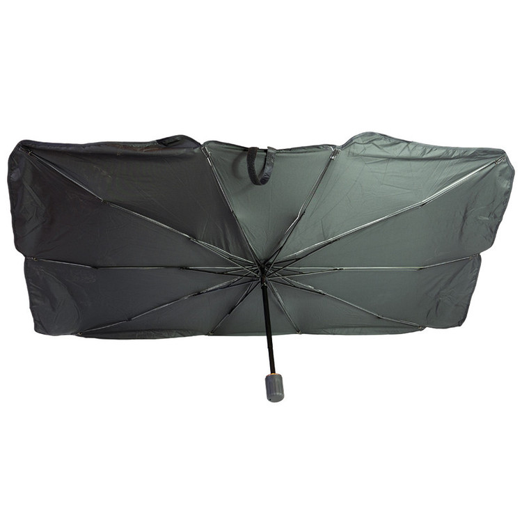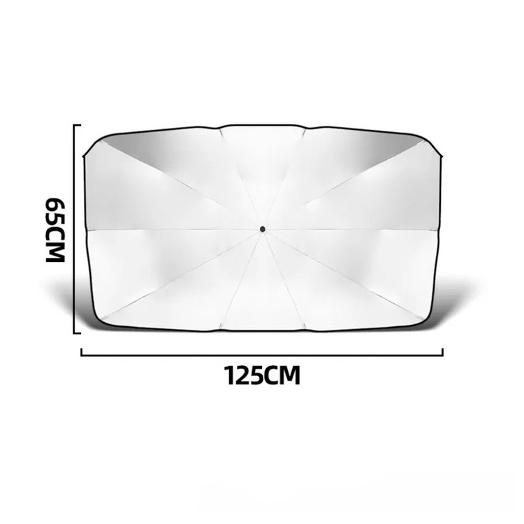 طراحی شده با پارچه محافظ UV، این محصول برای هر گونه محافظت در برابر نور خورشید عالی است.با طراحی هوشمندانه این چتر (sun shade umberella) نگران افتادن آفتاب گیر از شیشه جلو خود نباشید و آفتابگیر شیشه جلو چتری دارای ده دنده فولادی است که به خوبی پشتیبانی و از سقوط جلوگیری می کند.طراحی تلسکوپی آفتاب گیر، باعث شده این محصول استفادهای آسان داشته باشد و باز و بسته کردن آن سریع و بدون زحمت باشد.طراحی فوقالعادهای ک با پوشش ضد آفتاب روکش نقره به شدت نور خورشید را منعکس می کند و دمای داخل خودرو را کاهش می دهد و از خودروی شما محافظت می کند.سایبان ضد آفتاب ابزاری کاربردی برای محافظت از داخل خودرو در برابر نور UV و کمک به کاهش دمای داخل ماشین است.