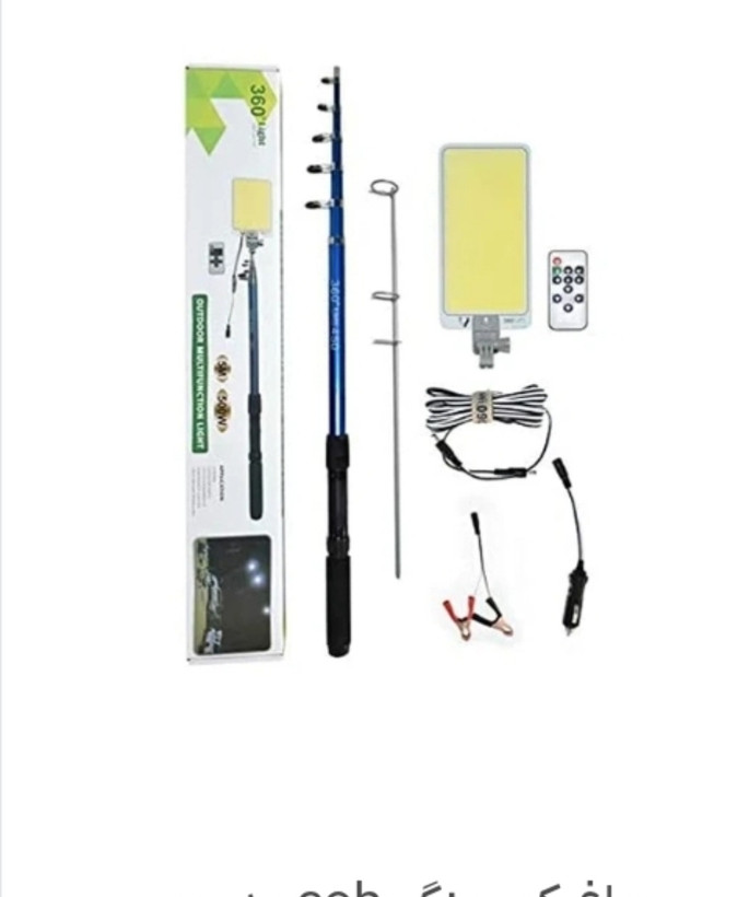-مقاوم در زمان بارندگی(درجه حفاظت تا رتبه IP65 در مقابل آب) دارای 165 عدد تراشه smd برتر برای قدرت بالا و یکپارچه که باعث افزایش کارآمد خروجی لومن می شود . -دارای نور سفید و نور کهربا -دارای میله فلزی جهت نصب روی زمین -دارای پایه مغناظیسی 360 درجه -برای فعالیت در فضای باز ، ماهیگیری ، کمپینگ ، برگزاری مهمانی در شب ، هر جا که به روشنایی نیاز باشد - جهت استفاده می توانید پلاگین فندک سیگار را به سوکت وصل کرده یا کلیپ ها را به باتری خودرو یا هر باتری 12 ولت متصل کنید استفاده در حیاط منزل استفاده در پارک و بوستان استفاده در جاده و بیابان استفاده در کوه و کمپینگ استفاده در کنار ساحل و ماهیگیری استفاده در بیابان گردی روشنایی محل کسب و غیره مشخصات کلی: لنسر قابل تنظیم تا ارتفاع 5 متر ریموت کنترل امکان تنظیم شدت نور امکان تنظیم حالت فلاشر (چشمک زن) قدرت 500W روشنایی17500لومنس پنل مقاوم COB کابل بلند 5 متری اتصال به باتری خودرو کنترل از راه دور گیره اتصال در زمین خاکی قابل اتصال به باتری اتومبیل قابل اتصال به فندکی اتومبیل