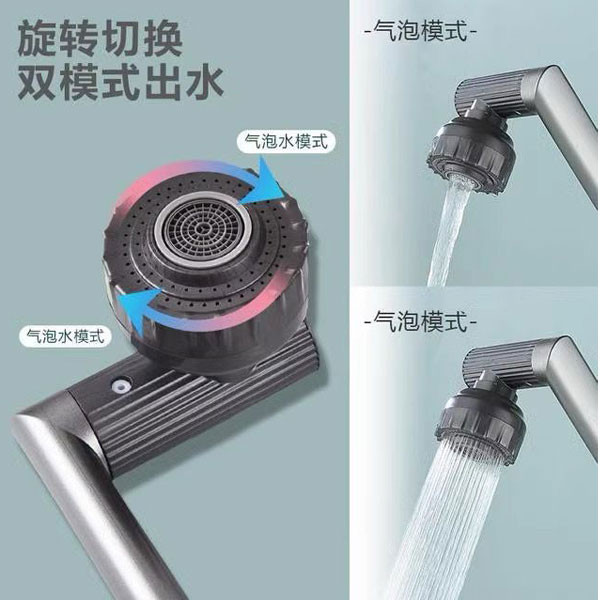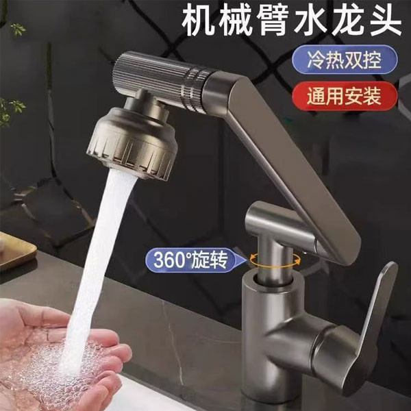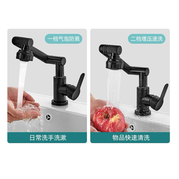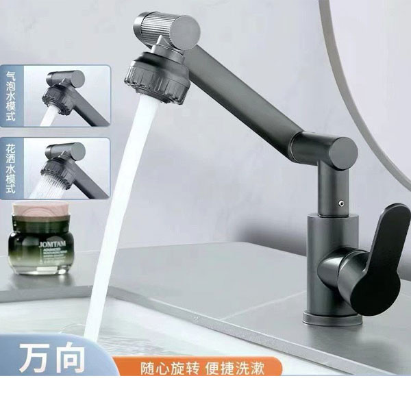 شیر روشویی تلسکوپی وارداتی به سبک مدرن ساخت کشور چین، قابلیت چرخش 360 درجه از جنس پلی اتیلن و در رنگ های مشکی و دودی عرضه شده است.همچنین آبریز این شیر از دو الگوی پاشش آب بهرمند است که با اختلاط آب و هوا ضمن افزایش فشار به صرفه جویی در مصرف آب نیز کمک می کند. ارتفاع شیر 33.2 سانتی متر است. طول شیر آب نیز 26 سانتی متر است و ارتفاع نازل شیر آب هم 33.6 سانتی متر است.