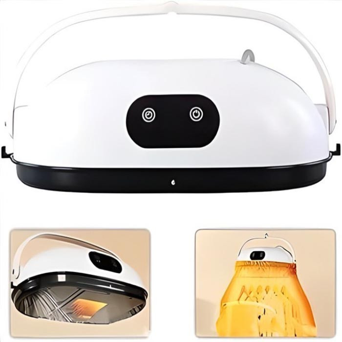 ابزاری عالی برای خشک کردن لباس ها در حین سفر و یا در مکان هایی که بعلت شرجی و مرطوب بودن هوا، لباس ها دیر خشک می شوند. این خشک کن لباس کاملا جمع و جور و تاشو و قابل حمل و سبک می باشد و می توانید به راحتی آن را با خود حمل نمایید. این محصول از مواد باکیفیت ساخته شده است و دارای یک هیتر داخلی می باشد. نحوه استفاده به این صورت می باشد که بایستی کیسه را دور دستگاه فیکس نموده و سپس لباس ها را با چوب لباسی روی دسته مخصوص قرار داده و زیپ کیسه را ببندید و دستگاه را روشن نمایید. شدت گرمایش دستگاه را می توان تا 180 درجه افزایش داد.