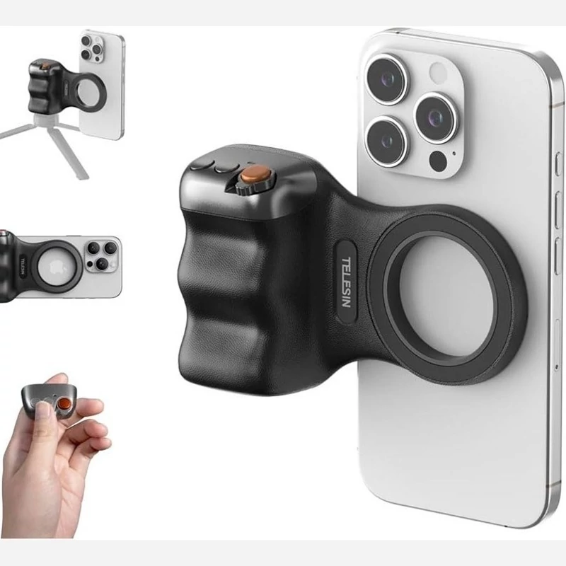 ابزاری عالی برای کسانی است که دنبال کنترل حرفهای عکاسی و فیلمبرداری با گوشی هستند. این گریپ سبک با مگنت N52 دوطرفه اتصال قوی و ضد لغزش فراهم میکند. شاتر دو مرحلهای و زوم سختافزاری تجربهای شبیه DSLR به شما میدهد . تا 10 ماه شارژ با باتری 110–130 و کنترل از راه دور تا 10 متر آن را برای انواع موقعیتهای عکاسی و ویدیو مناسب میکند . • مگنت N52 فوقالعاده قوی برای اتصال محکم • دکمه شاتر و زوم DSLR-style مجهز به کنترل بلوتوث • بدون نیاز به شارژ با مصرف فوقالعاده کم • وزن سبک ~109 گرم و طراحی ارگونومیک • مناسب اکثر گوشیها (با پشتیبانی MagSafe) • ریموت جداشونده با شعاع 10 متر برای کنترل از راه دور